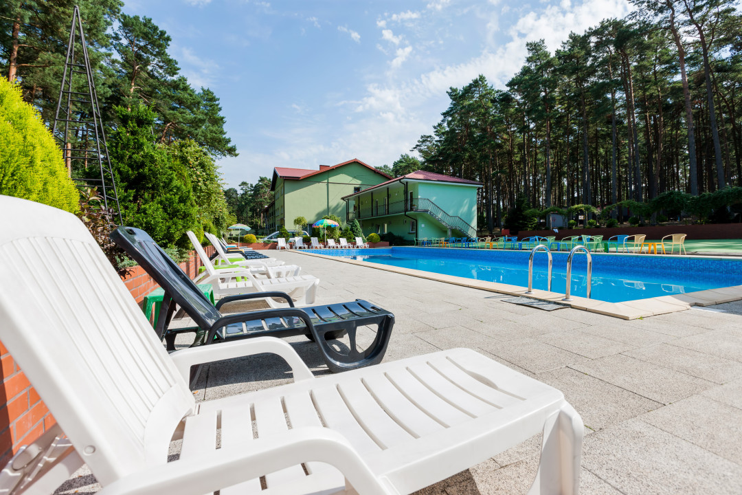 „Dziejba Leśna” położona jest w lesie sosnowym, blisko plaży, z odkrytym basenem i świetlicami tematycznymi.